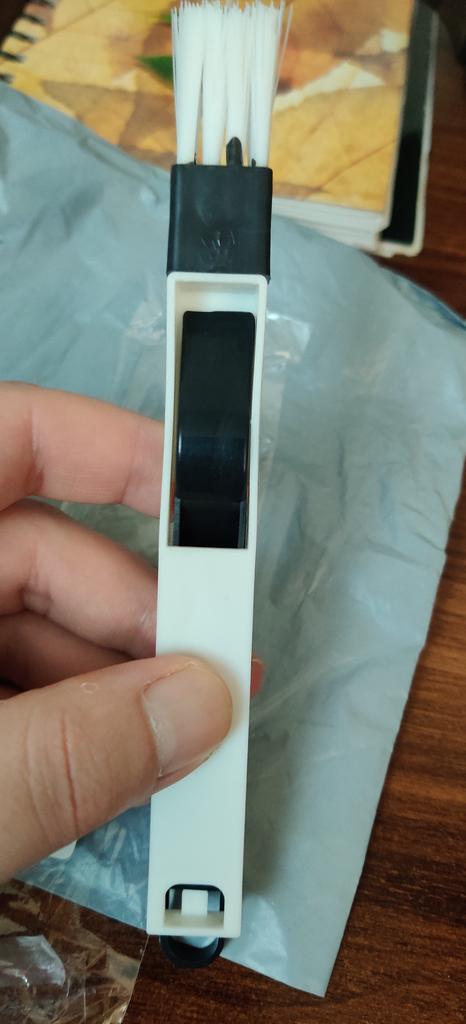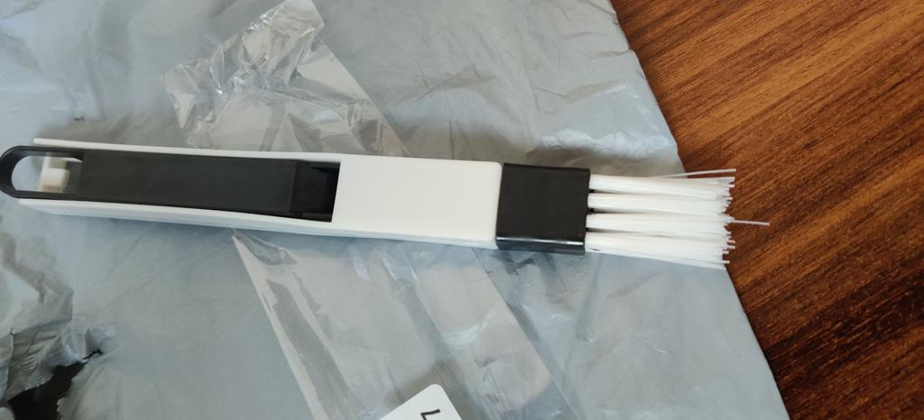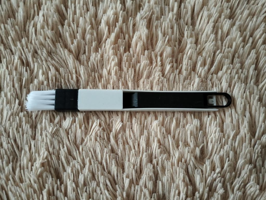 Pędzel jest wygodny. Wyczyściłem nim klawiaturę, całkiem wygodnie) Pędzel jest dość twardy, ale nie zarysował klawiatury.. Można go również używać do czyszczenia innych trudno dostępnych powierzchni. Sam pędzel jest łatwy do czyszczenia lub mycia. Proste i wygodne urządzenie👍
