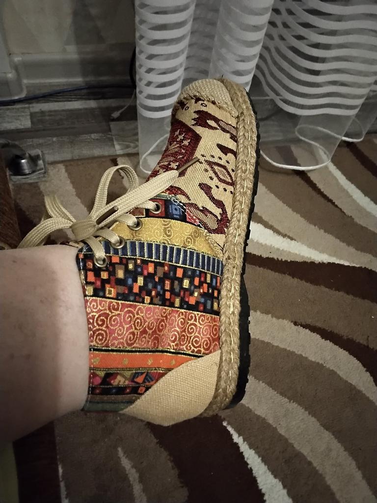 Fajne, ale... nosiłam rozmiar 37. Zamówiłam 38, sugerując się recenzjami. Powinno być 39, mój palec ledwo dotknął krawędzi. Może rozciągnę to. Bardzo dobre na szeroką nogę. Dziękuję.