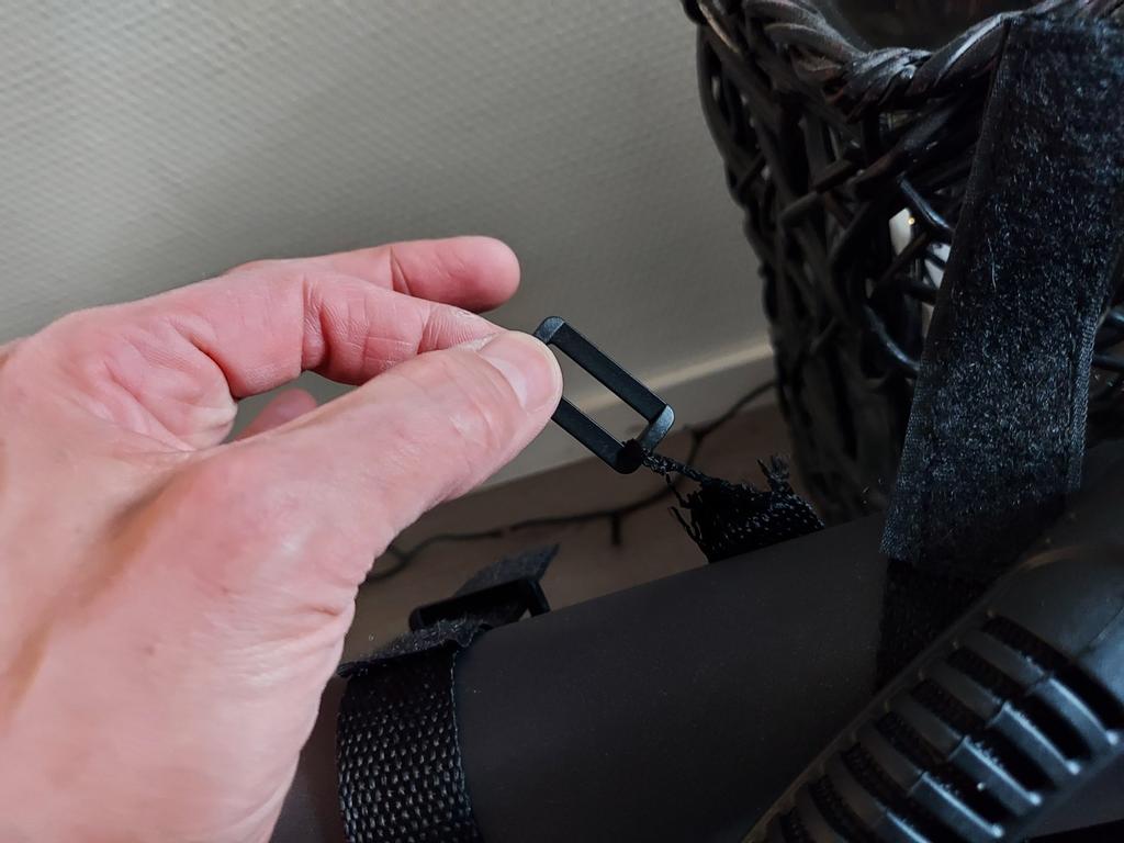 Uchwyt dobrze odebrany, zgodny z opisem, niestety trochę większy na wysokości dwóch rzepów u góry i u dołu. Ten środkowy jeszcze ujdzie. Więc spróbowałem zrobić kółko przed włożeniem w pętlę i ostatecznie trzyma się dużo lepiej. Więc nie ma problemu. Natomiast pod względem jakości nie sądzę, że posłuży długo, ponieważ ledwo pociągnąłem i już wychodzą nitki.