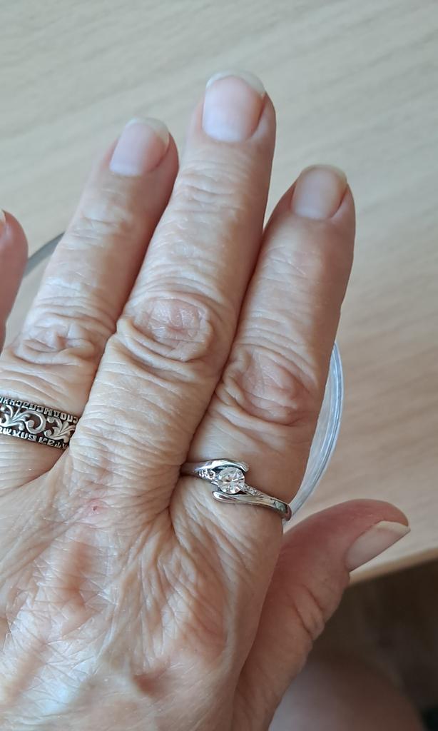 Bardzo ładny pierścionek, trochę za duży, ale teraz bardzo trudno mi znaleźć odpowiedni rozmiar, mogę go nosić