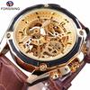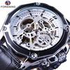 Forsining przezroczysty futerał ruch przekładni Steampunk mężczyźni automatyczny zegarek szkieletowy Top marka luksusowa otwarta praca projekt samonakręcający
