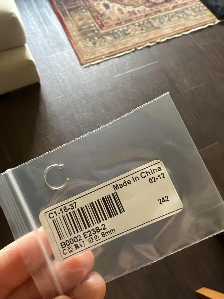 Piękny kolczyk! Ale nie mieści się w nosie, zdecydowałem się nosić go na uchu. Bardzo mi się to podoba.