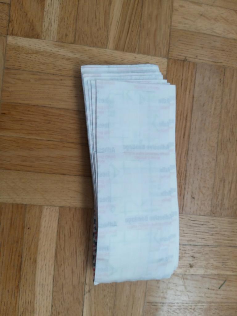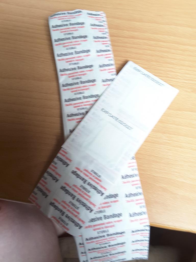 Doskonały bandaż samoprzylepny. Wodoodporny, dobrze trzyma. Kupiłem go za 59 lei, dokładnie 50 sztuk. Drugie zdjęcie jest na mojej dłoni, po prysznicu. Zdecydowanie polecam.