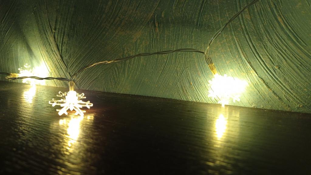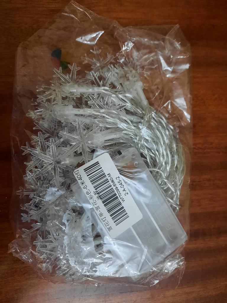 Wszystko jest w porządku, ale płatki śniegu są znacznie dalej od siebie, przez co wygląda rzadko i gorzej niż na zdjęciu. Wszystko inne jest w porządku, bardzo długi łańcuch, trzy baterie, wszystko działa.