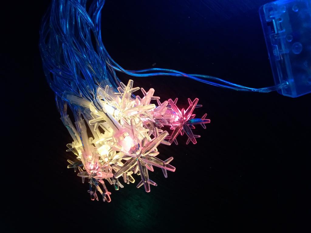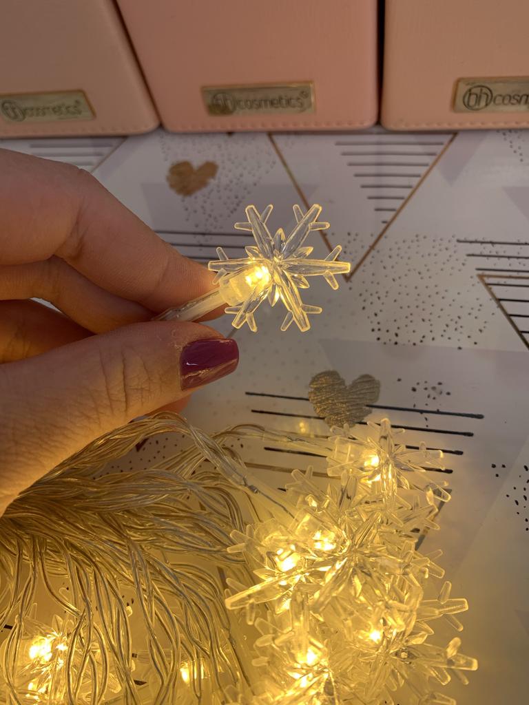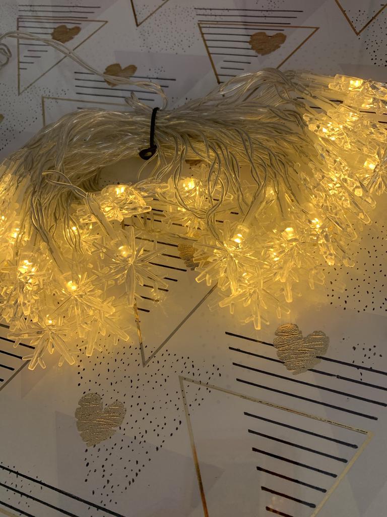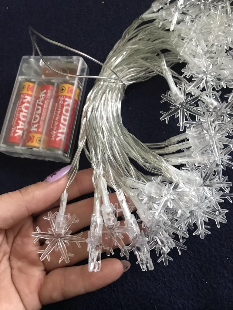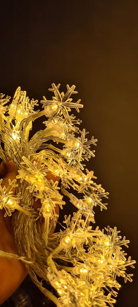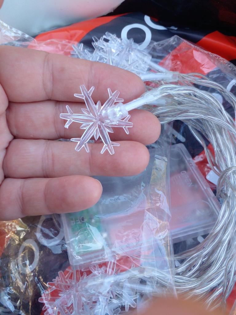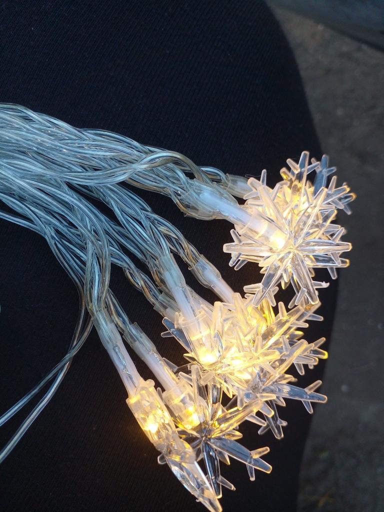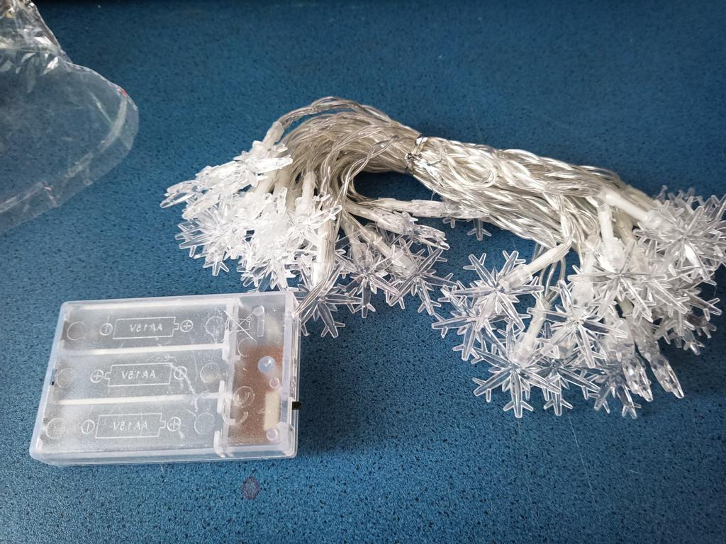 Piękna girlanda z żarówkami w postaci płatków śniegu. Współpracuje z 3 bateriami „palcowymi” (należy dokupić osobno). Możesz wybrać długość girlandy, jaką potrzebujesz. Polecam sprzedawcę i produkt.