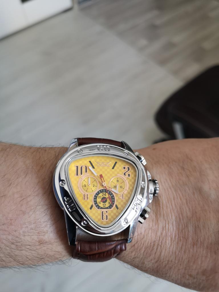 Jaragar Sport Racing Design Geometryczny trójkąt Pilot skórzany męski zegarek mechaniczny Top marka luksusowy automatyczny zegarek na rękę