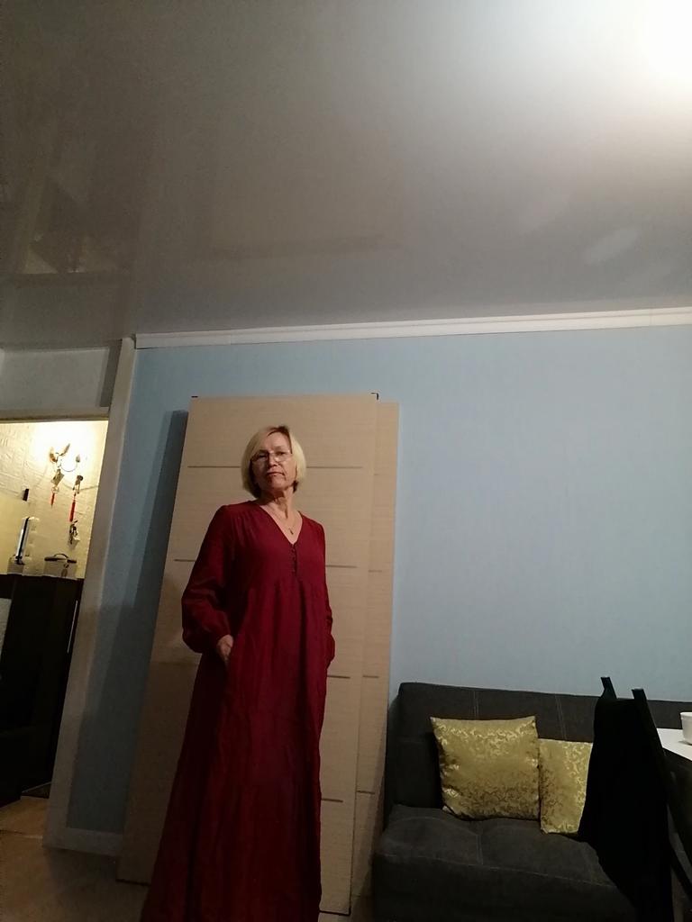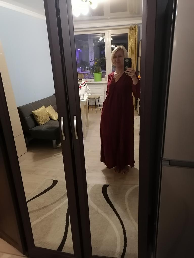 To moja druga sukienka, poprzednia była w kolorze beżowym. Bardzo podoba mi się ten kolor! Jestem zadowolony ze stylu i materiału, dobrze wygląda, nie unosi się, jest lekki, są kieszenie. Całkiem sporo prześwituje, bieliznę pod sukienkę należy nosić w kolorach nude. Zgadłem rozmiar (noszę M). Świetny zakup, dziękuję!