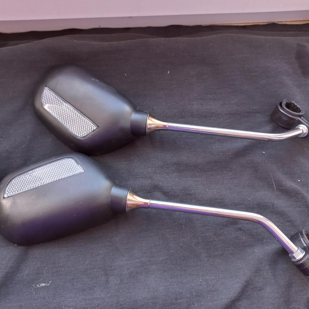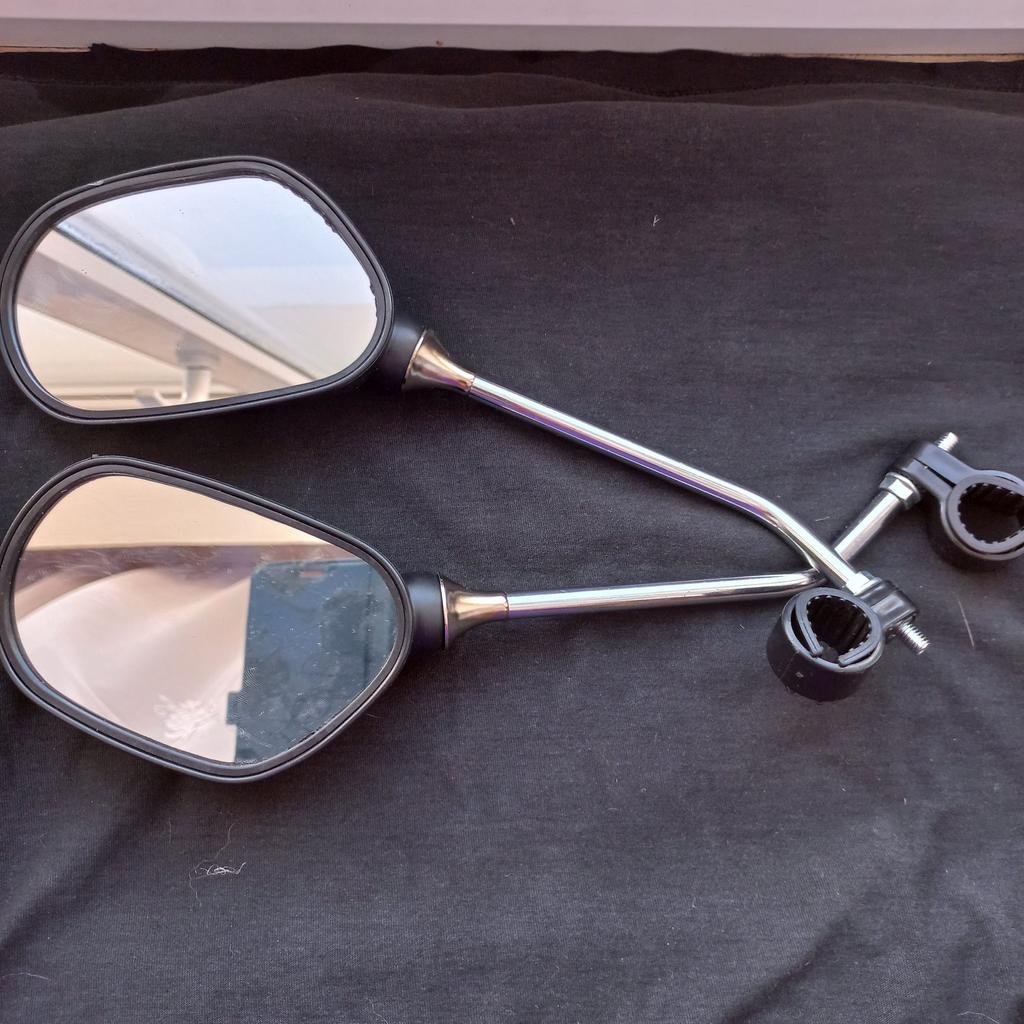 Świetne lusterka rowerowe!!! Tak, nawet w przypadku motoroweru))) plastikowe mocowania są delikatne, nie można ich mocno dokręcić, pękają. Musisz wziąć metalowe