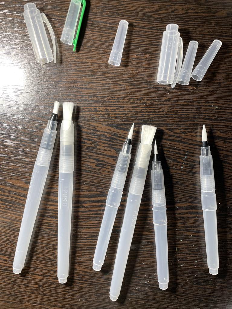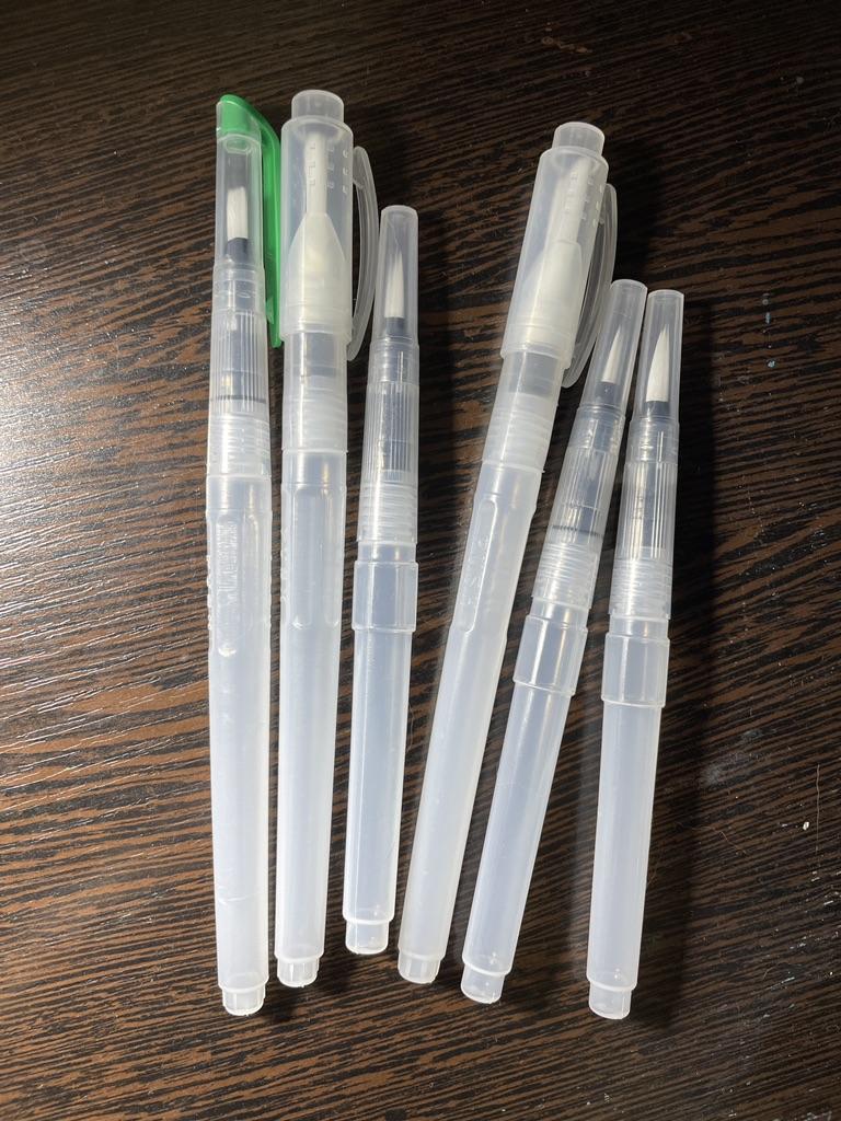 Zbiorniczki na wodę są nieco sztywne. Poza tym są to bardzo dobrej jakości pędzle