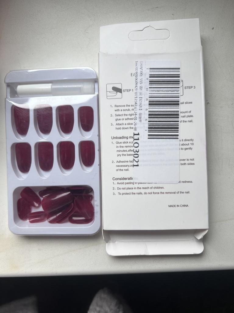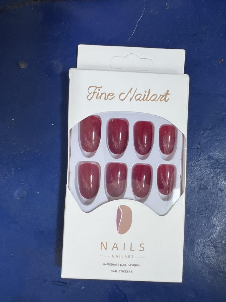 24X Czerwone wino Fałszywe paznokcie Pure Color Round Head Manicure Nail Decor Powrót z klejem