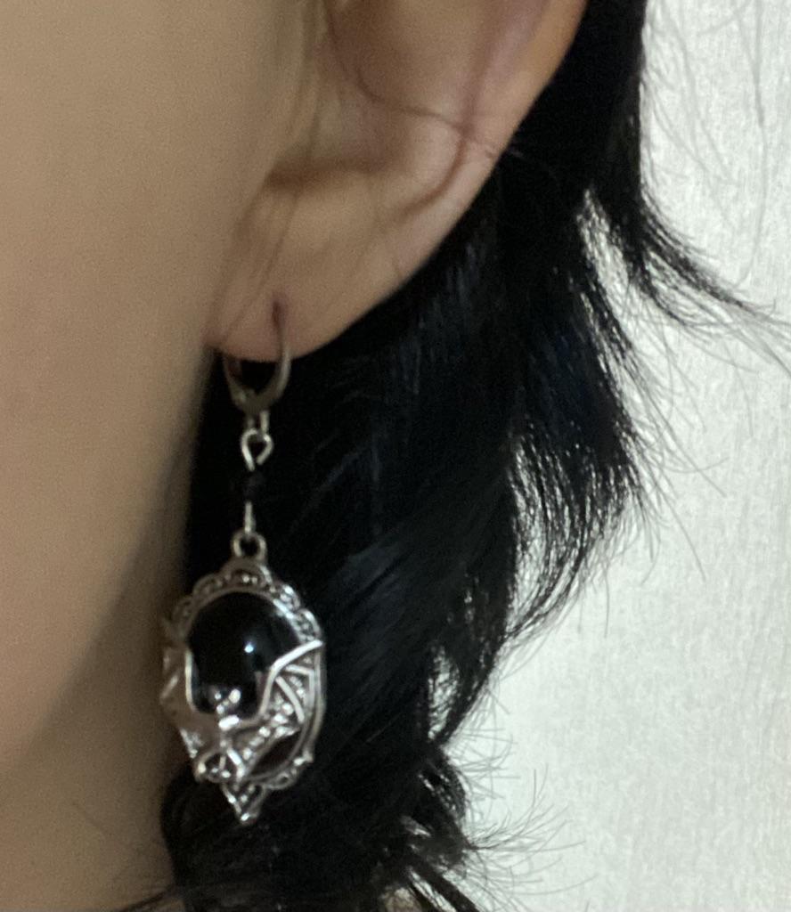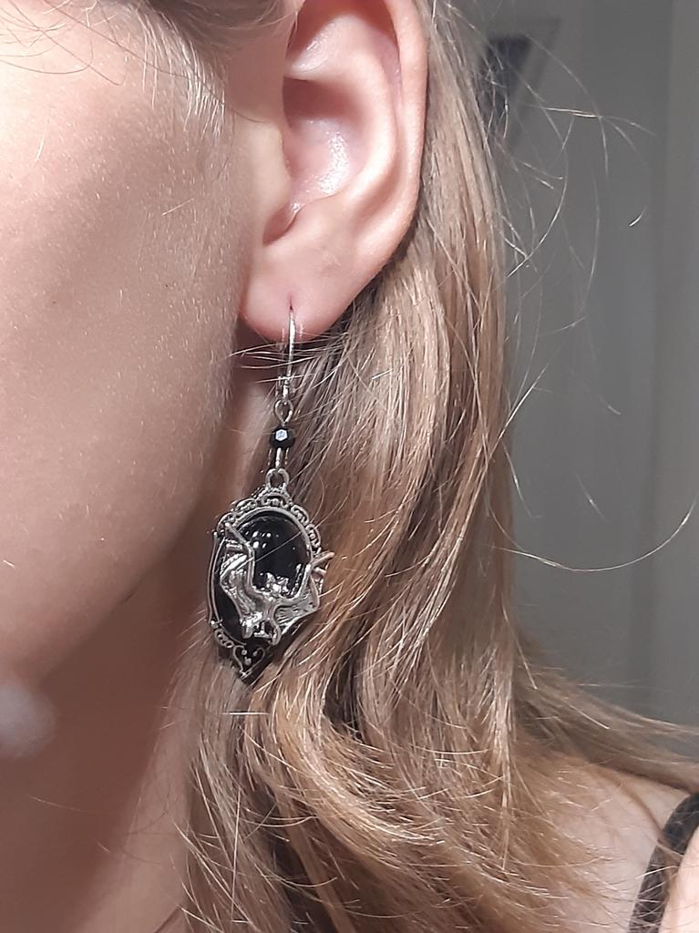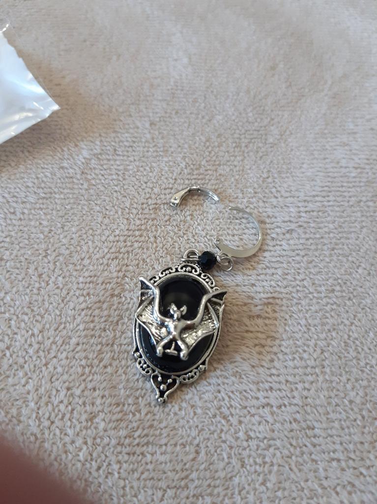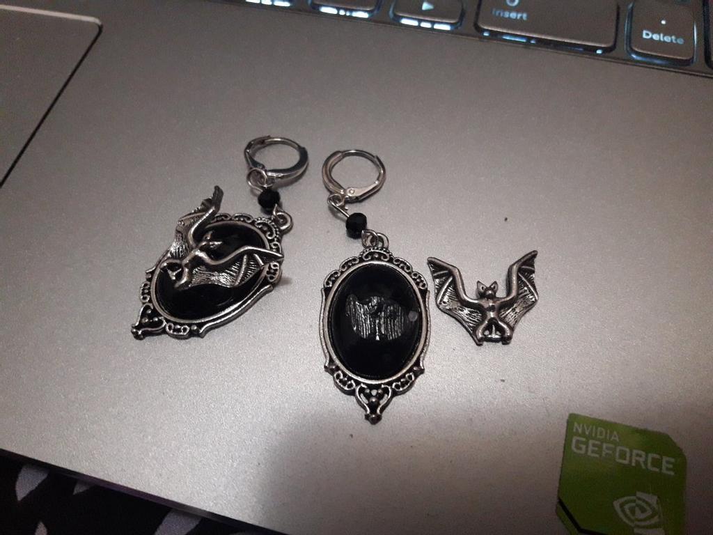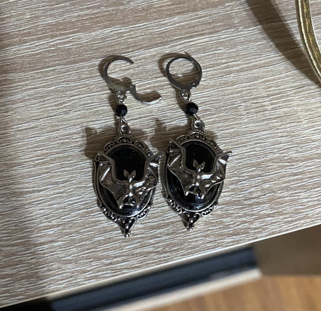 Gotyckie kolczyki nietoperzy, kolczyki nietoperzy wampirów, kolczyki z kameą księżycową, kolczyki czarownic, biżuteria pogańska na Halloween
