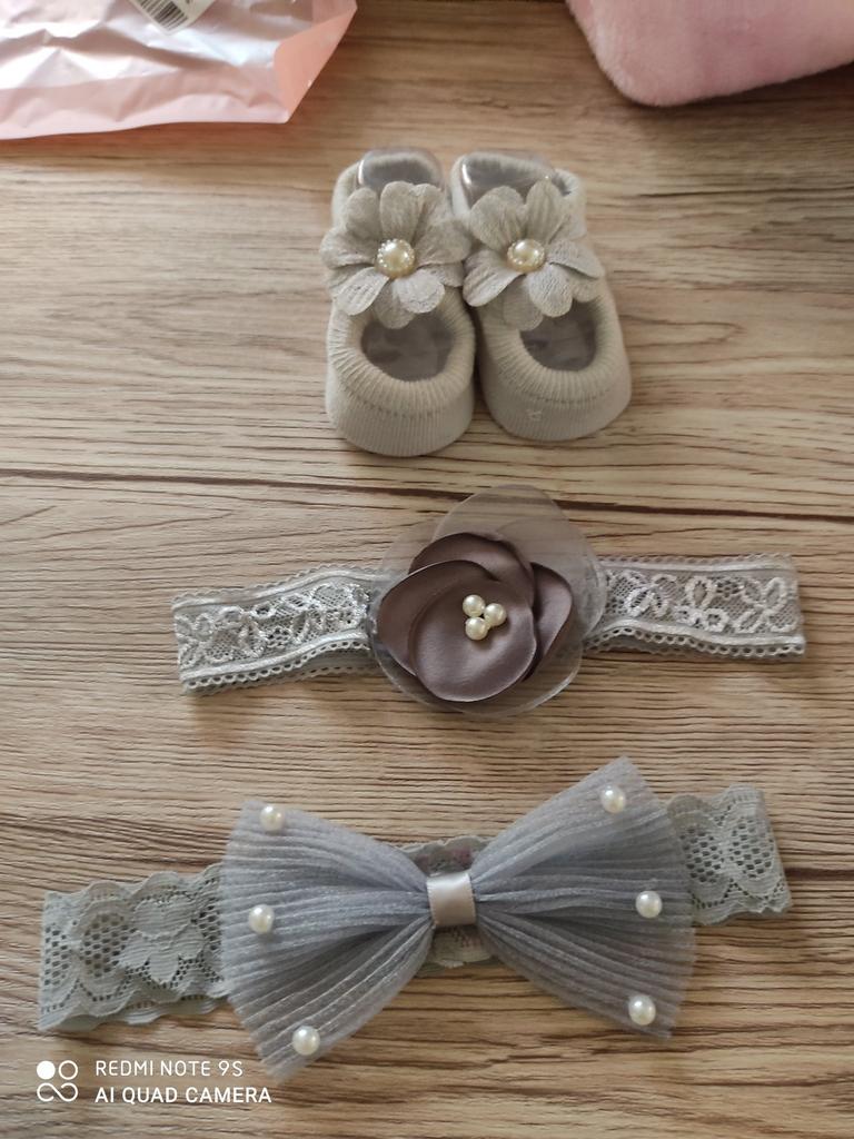 Piękny 3-częściowy zestaw dziecięcej opaski na głowę + skarpetki!