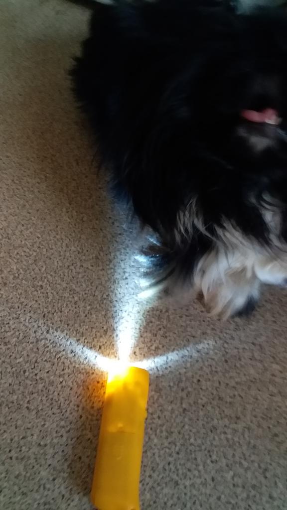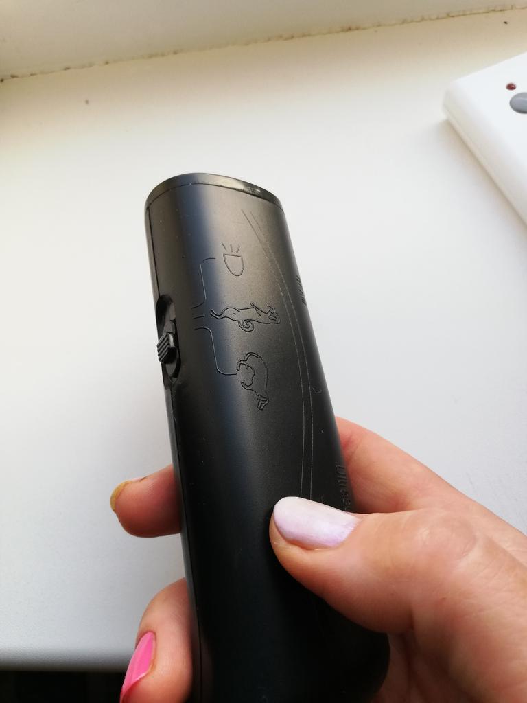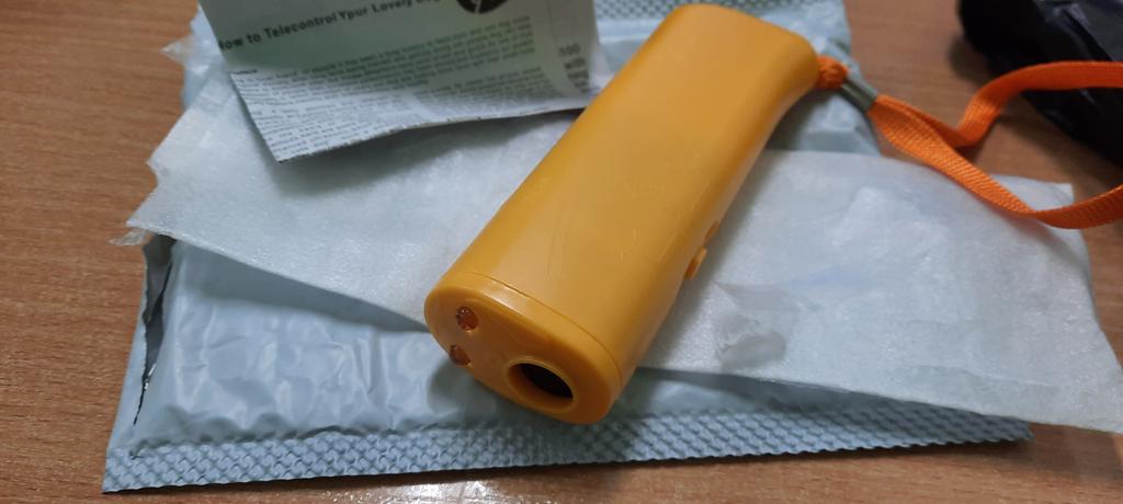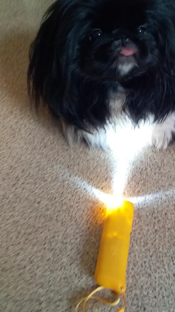 Służy jako latarka. Zestaw psów nie wykazywał żadnych zmian w zachowaniu. Użyto nowych baterii i sprawdzono napięcie.. Nie działa na psy.