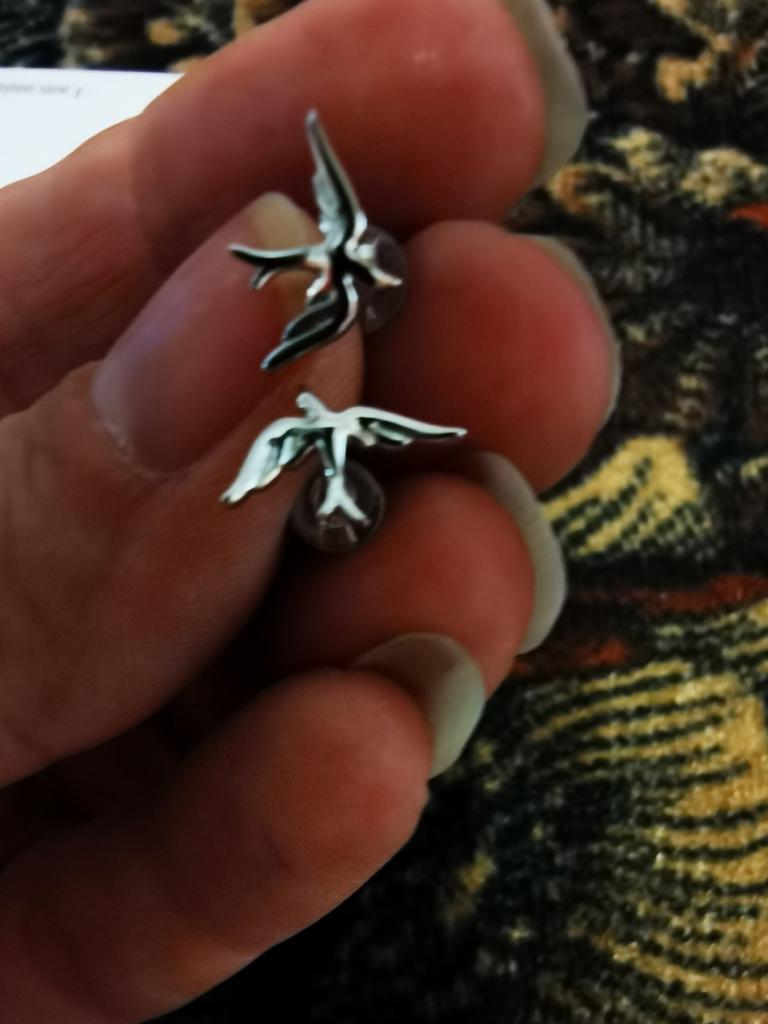 Filigranowe kolczyki wkrętki z jeden 🕊️ połknij każdy.💖 Bardzo dobre wykonanie i jakość.👌 Wtyczki były w idealnym stanie Stan.🤗 Metal jest srebrny.🥈 Czas dostawy wynosił około 3 tygodni.🛬 Wielkie dzięki za to.💐