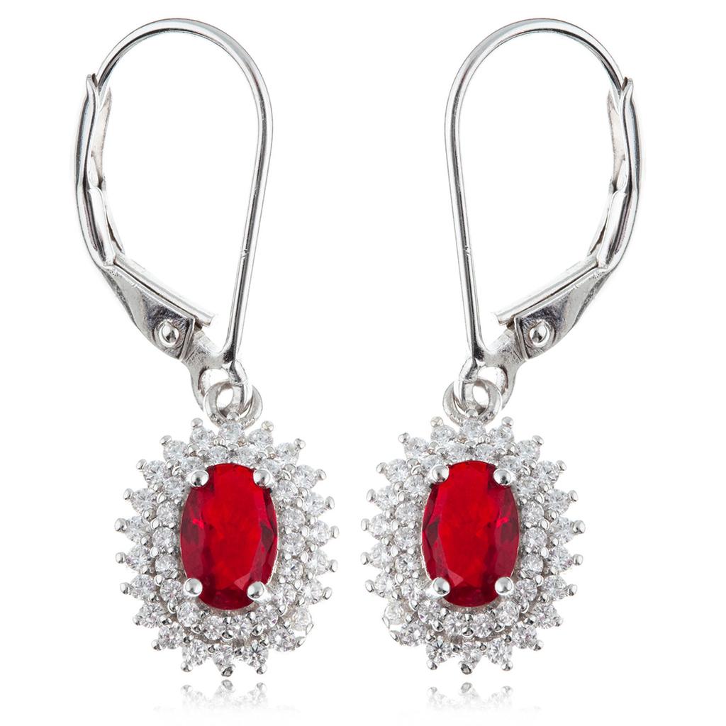 Les Trésors De Lily [R0692] - Kolczyki wiszące Srebrne 'Sissi' czerwone białe srebrne (rodowane) - 10x9 mm
