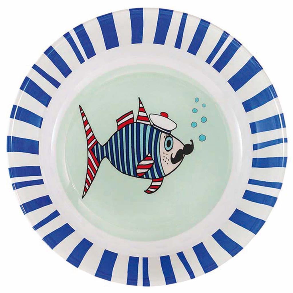 Les Trésors De Lily [R0634] - Assiette creuse mélamine 'Saperlipopette' bleu (Mr. Fish) - 19x5 cm