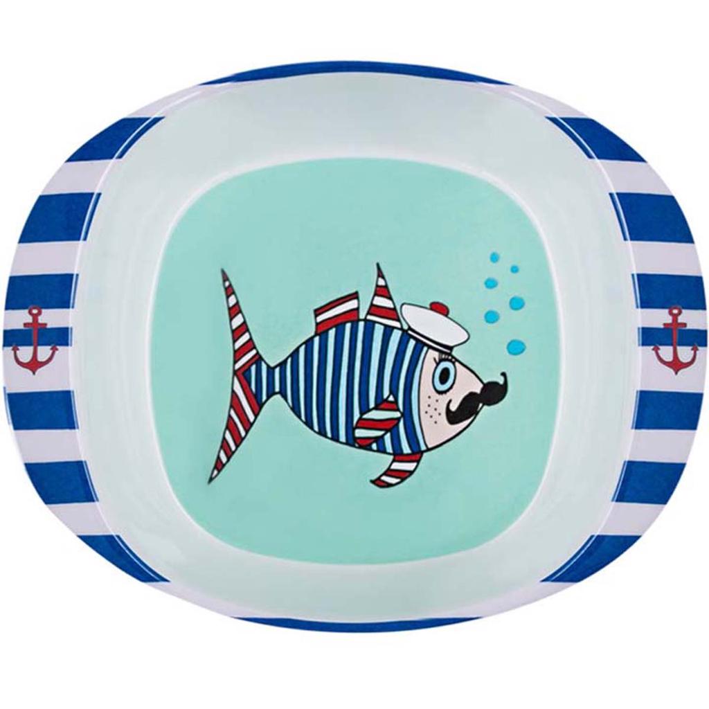 Les Trésors De Lily [R0643] - Assiette bébé mélamine 'Saperlipopette' bleu (Mr. Fish) - 16. 5x13. 5x4. 2 cm