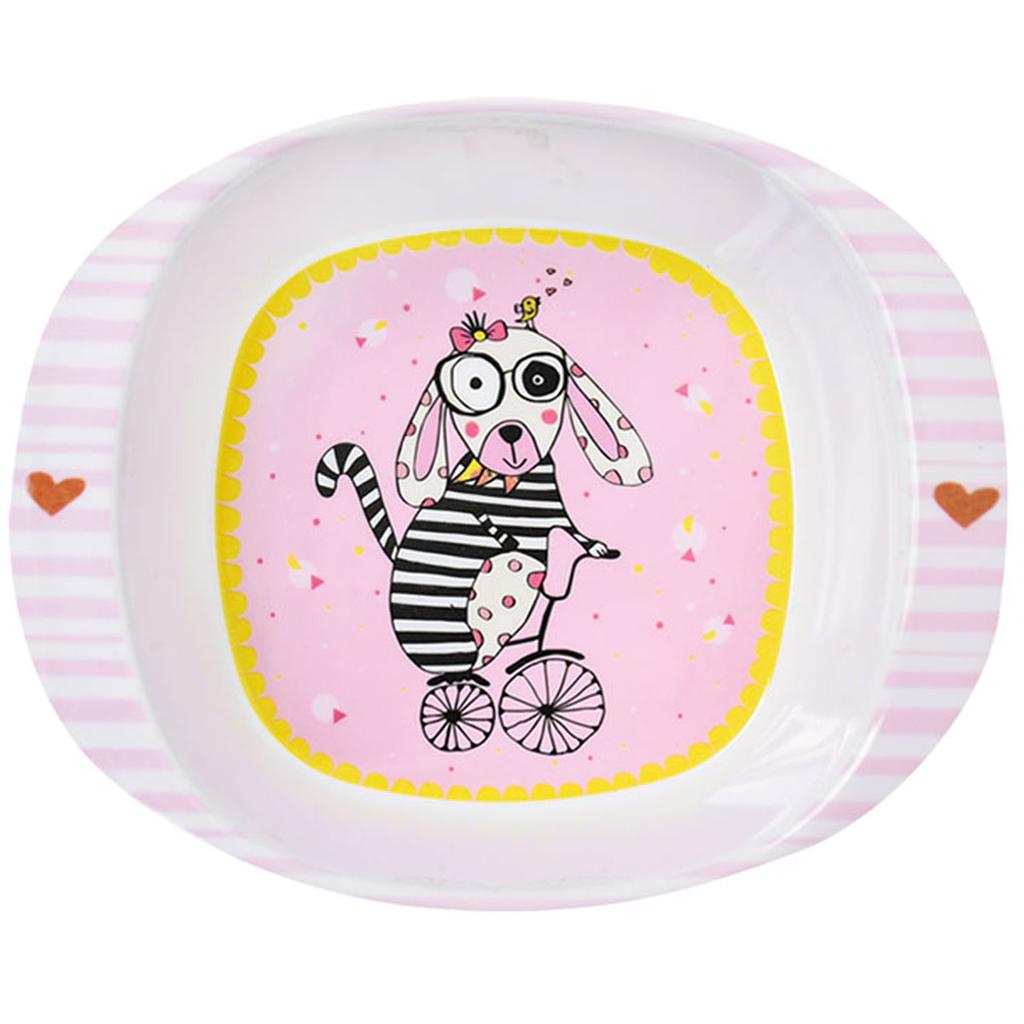 Les Trésors De Lily [R0647] - Assiette bébé mélamine 'Saperlipopette' rose (chien Vivienne) - 16. 5x13. 5x4. 2 cm