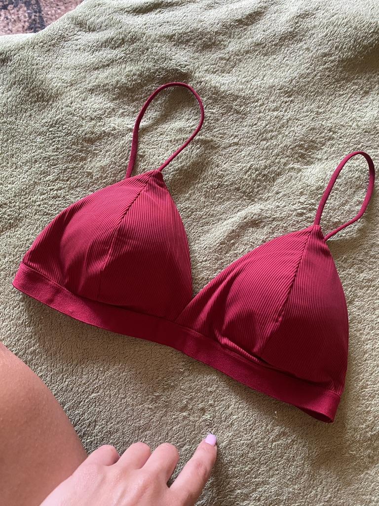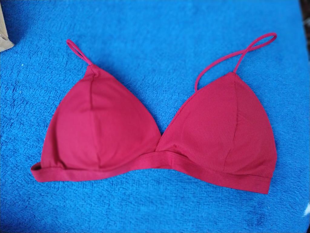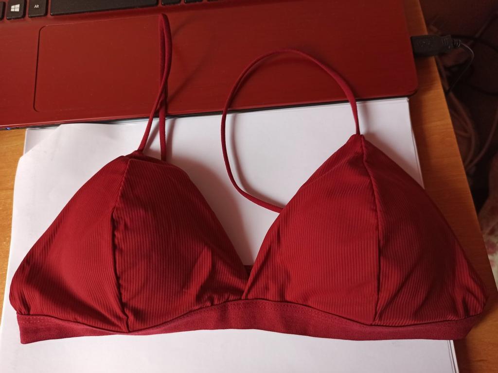 Biustonosz ładny, kolor czerwony taki jak na zdjęciu, przyjemny w noszeniu Pasek trochę cienki, ale nie ma na co narzekać Są podkładki