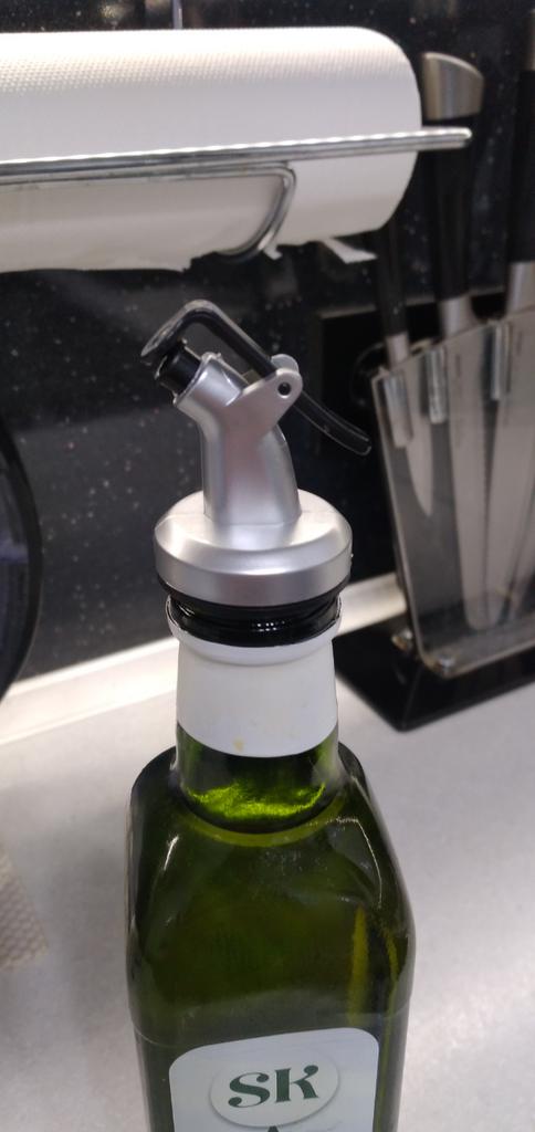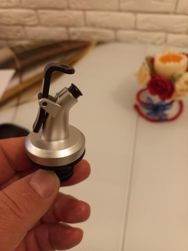 Zakrętka do butelki oliwy z oliwek, która kontroluje ilość oliwy wydostającej się z opakowania, a także chroni produkt. Przedmiot jest niezwykle praktyczny, można go łatwo otworzyć i zamknąć, po prostu dotykając zaworu sterującego (chroni to dłonie przed zabrudzeniem olejem). Zakrętka jest zwykle stosowana w tradycyjnych opakowaniach oliwy z oliwek. Polecamy.