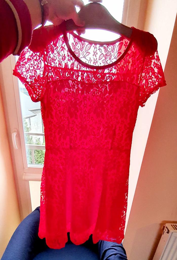 Materiał sukienki miły w dotyku ,jest ładna ,ale za mała na rozmiar S