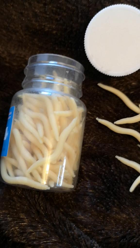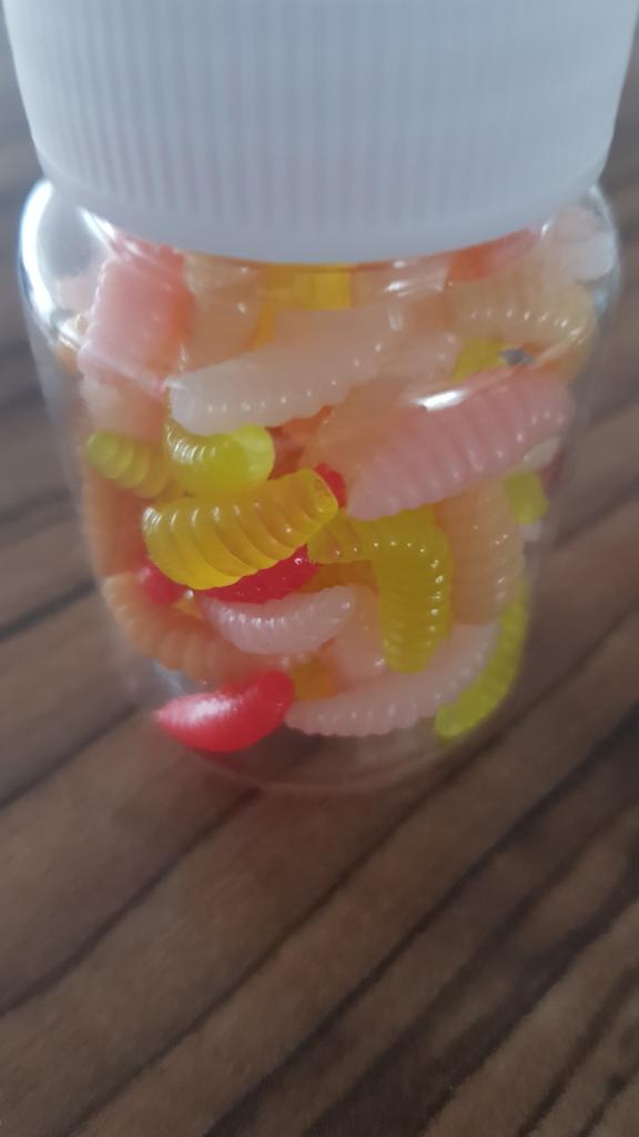 Larwy wyglądają jak prawdziwe, tylko trochę większe.
