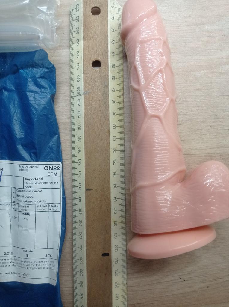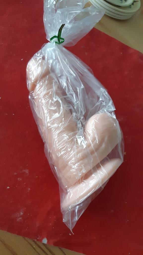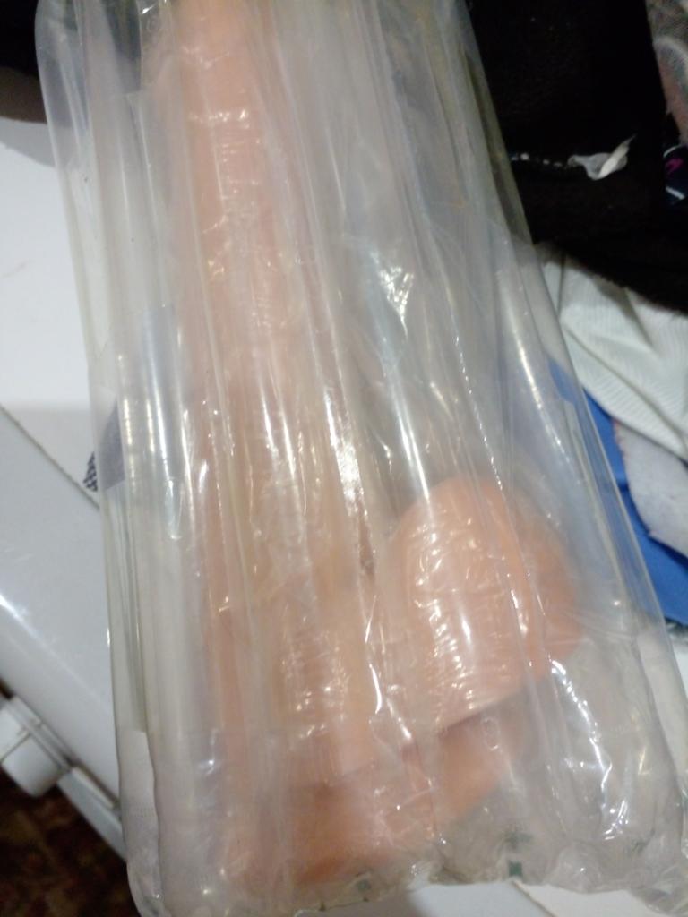Dobrze zapakowane, nie prześwitujące. Rozmiar odpowiada zamówieniu, wydaje się realistyczny, część robocza ma 15 cm, ale przyssawka w ogóle nie działa.