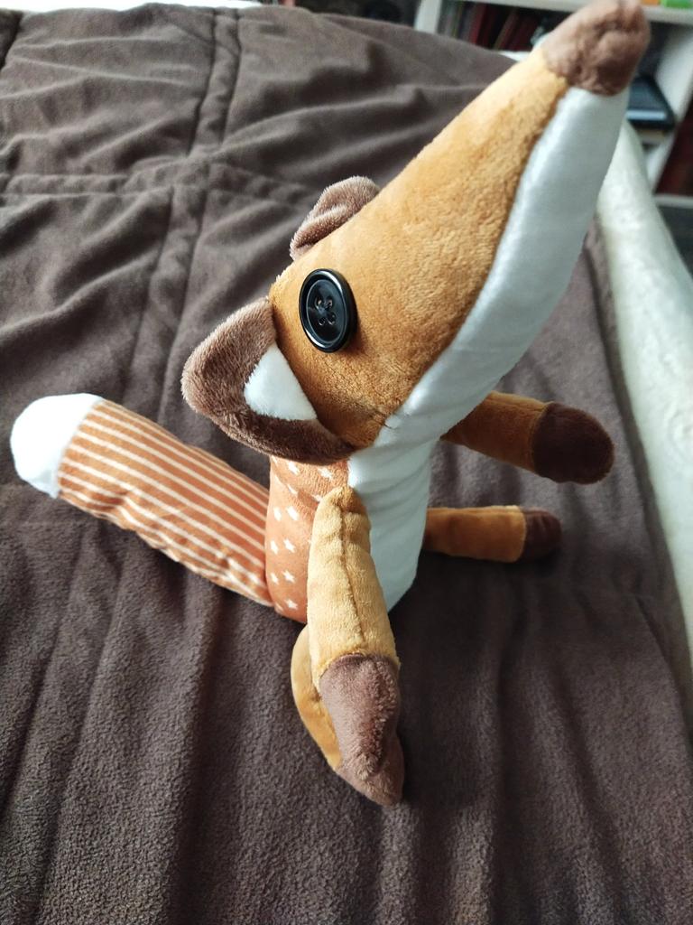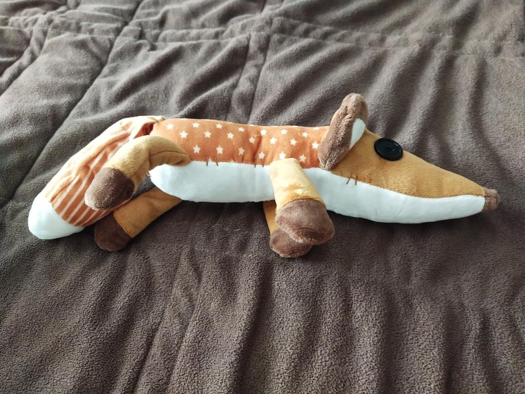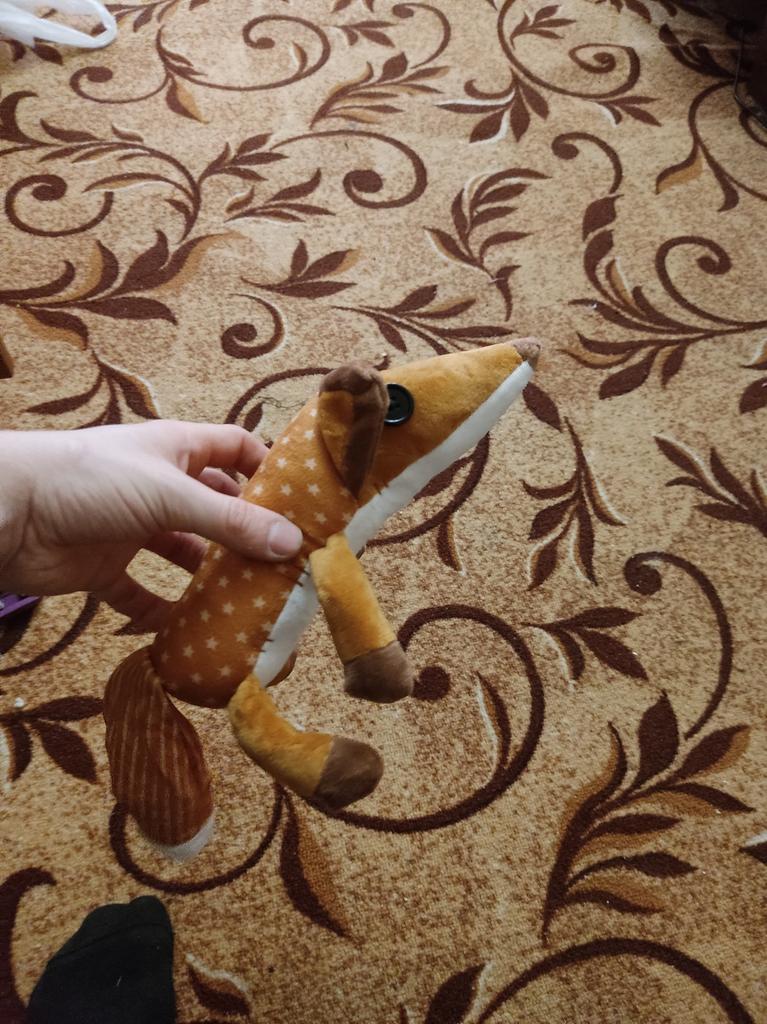 Zabawka nie jest przeznaczona dla małych dzieci, można zranić się drutem włożonym w łapki; pod pewnym kątem mocno wystaje spod materiału i łatwo go połamać. Zabawka różni się od zdjęcia, tak jak różnią się produkty indywidualne i masowe. Zniknął urok ręcznie uszytego lisa; stał się bardziej szczurem z spuchniętym ogonem.
