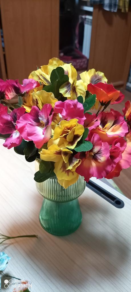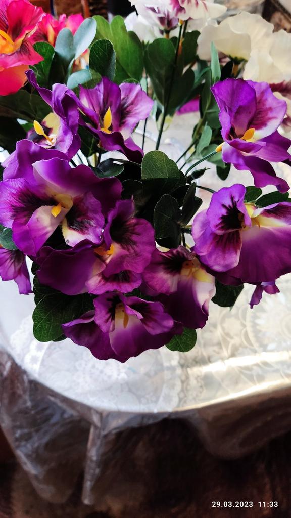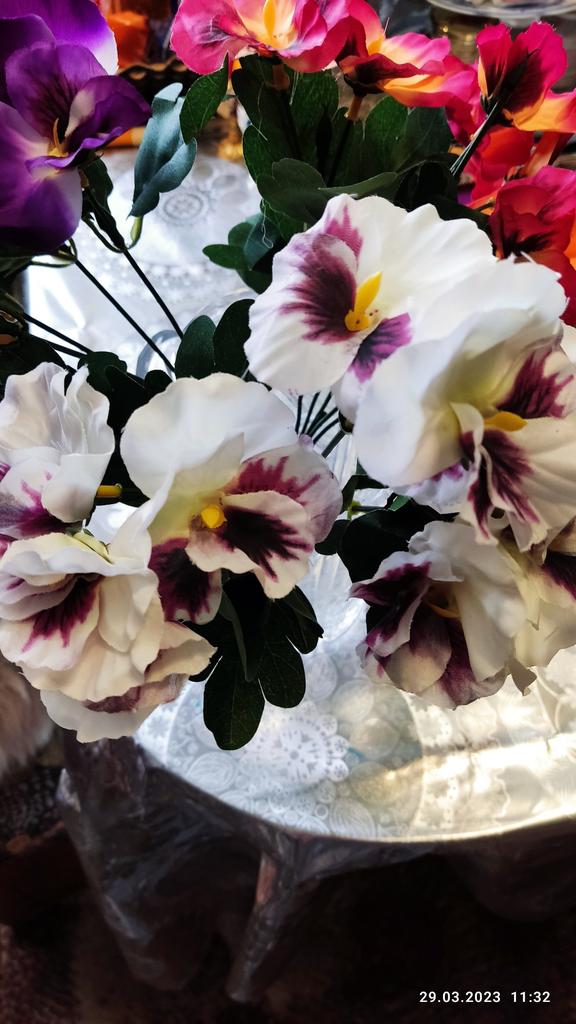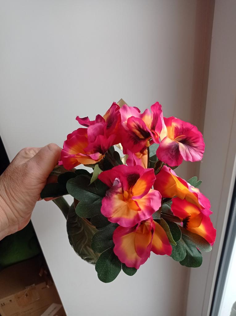 Zamówione 11.03.2022 Otrzymane 07.04.2022 Sztuczne kwiaty, bukiet. Bardzo ładne, żywe kolory. Wygląda jak bratek. Więc jest dobrze. Ogólnie bukiet lichy sam w sobie. Dlatego trzeba do niego dołożyć dodatki, żeby w miarę ciekawie wyglądał. Wysokość standardowa. Nie jest to mały bukiet, ani zbyt wysoki. Taki akurat. Wiadomo, że po przesyłce należy go wyprostować i musi swoje odleżeć 🤭 Jeżeli szukacie bukietu, który trzeba dodatkowo ozdabiać. Polecam. Należy pamiętać,że nie jest to bujny bukiet. 😉 Dziękuję joom i sprzedawcy 😘 Jeżeli spodobała ci się recenzja zostaw ❤️