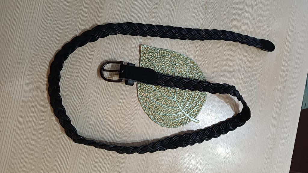 Bardzo przyjemny materiał! Pasek jest naprawdę piękny. Nie wiem, jak długo wytrzyma, ale na razie jestem zadowolona, rozmiar na obwód w talii 93 pasuje idealnie.