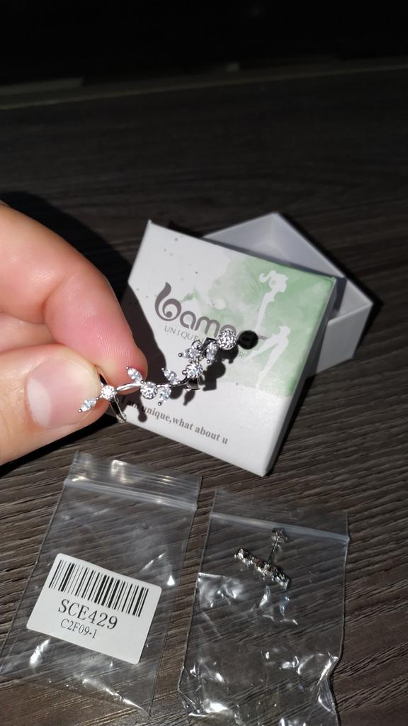 ✅️ Dotarł za około 3 tygodnie. Kolczyki są małe i urocze, ale spodziewałam się, że będą inaczej wyglądać na uchu (listek skierowany w dół, ale wolałabym, żeby był z boku)😔 w każdym razie jestem z nich zadowolona i zamierzam je mieć noś je tak 🤍