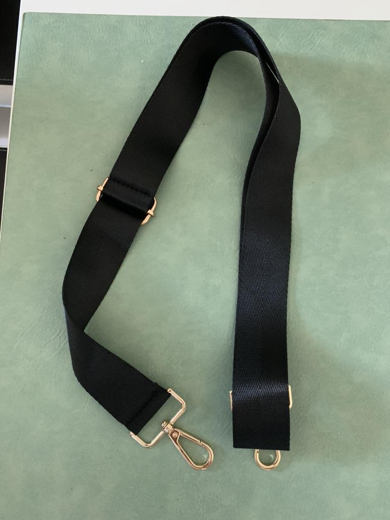 Bardzo ładny pasek na ramię, mam nadzieję, że karabinki wytrzymają. Można łatwo regulować długość.