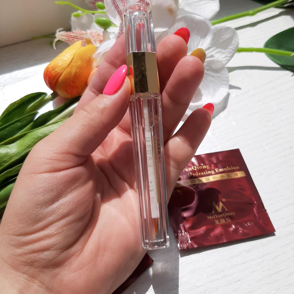 🌱 Serum na porost rzęs - marka: MeiYanQiong 🔎 Aby odżywka do rzęs naprawdę mogła zdziałać cuda, musi wpłynąć na cykl wzrostu włosa. Rzęsy, podobnie jak każdy włos na głowie, rosną według określonego wzorca: 1) Faza anagenu (aktywna): rzęsy stale rosną. Faza ta może trwać od czterech do sześciu tygodni. 2) Faza katagenu (przejściowa): rzęsy osiągają maksymalną długość, a mieszki włosowe zaczynają się kurczyć. Ta część cyklu może trwać od dwóch do trzech tygodni. 3) Faza telogenu (spoczynku): Jest to okres spoczynku, który może trwać około 100 dni, zanim rzęsy w sposób naturalny wypadną. 👉Każda rzęsa przechodzi fazę w różnym czasie. Średnio wymiana pojedynczej rzęsy trwa od czterech do ośmiu miesięcy. *informacja ta pochodzi z: self.com Używam go od tygodnia i muszę użyć więcej, aby móc mówić o jego efektach. Dlatego później zmodyfikuję moją recenzję. 🐌 Jak używać: Nakładaj na cebulki rzęs za pomocą pędzelka. Unikać dostania się produktu do oczu. Jeśli serum dostanie się do oczu, natychmiast przemyj je dużą ilością wody. PORADY: 🎯 zacznij aplikować od wewnętrznego kącika, kierując się na zewnątrz. 🎯 używaj dłoni po tej samej stronie, co oko, nad którym pracujesz, aby nie zasłaniać Ci widoku. 🎯można nakładać również na brwi. 👍 Jest prawie bezwonny, a po nałożeniu nie wydziela nieprzyjemnego zapachu. 👍 Jest gęstszy od wody, ale nadal przypomina wodniste serum. 👍 Posiada aplikator w postaci pędzelka, co ułatwia aplikację. 👍 Butelka jest szczelnie zamknięta. Jego opakowanie jest również zapieczętowane. 👍 Łączna ilość to 3 ml. Zamówiłem tak wiele produktów do pielęgnacji skóry marki MeiYanQiong i bardzo się cieszę, że sprzedawca umieścił je w jednym opakowaniu, ponieważ zapłaciłem mniej za opłatę celną (która stosowana jest tylko w Turcji, w przypadku osób mieszkających w Turcji)