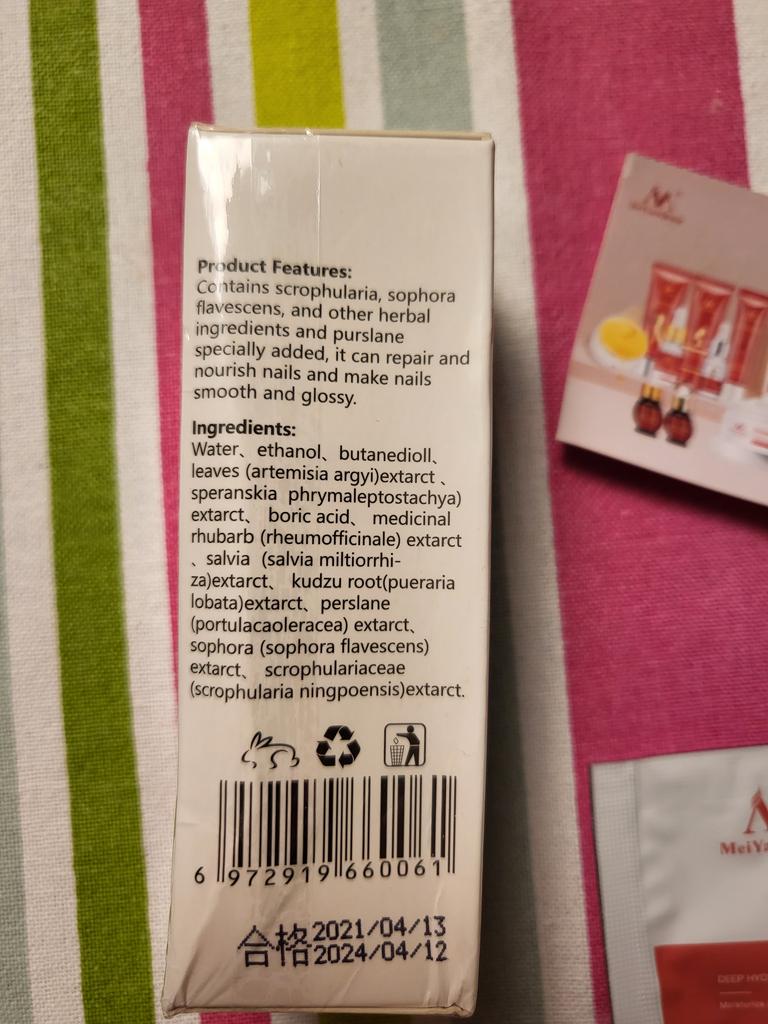 Płyn regenerujący do paznokci dotarł do mnie po 5 tygodniach od zamówienia. Pachnie wyciągami roślinnymi. Opakowanie lekko pogniecione w czasie transportu było jednak dobrze zapakowane i nic złego się z butelką szklaną nie stało. Trzeba aplikować go na zgrubiałe paznokcie 2-3x dziennie. Na efekty trzeba jednak poczekać.