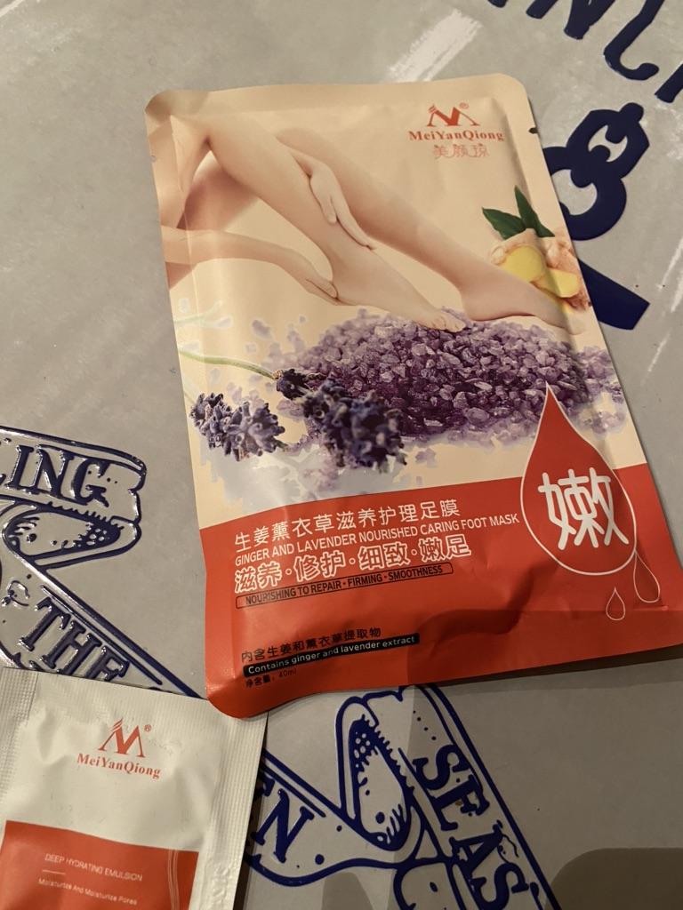 Maska peelingująca do stóp marki MeiYanQiong ✨ Jest to produkt do usuwania modzeli i martwych komórek ze stóp. Przyszedł idealnie zapakowany, dobrze zapieczętowany, aby pokazać, że jest nowy i higieniczny. To ekstrakt z lawendy. Po otwarciu znajdziesz dwie plastikowe skarpetki, a w środku znajduje się produkt. Wystarczy włożyć każdą stopę w skarpetkę, zamknąć naklejką dołączoną do produktu i przytrzymać od 45 do 60 minut. To uczucie jest bardzo przyjemne. Miękki i przyjemny aromat. Skóra pozostaje świeża i promienna. Następnie usuwa się go, a stopy czyści się wodą z mydłem. Trzeciego dnia zabiegu martwy naskórek zaczyna się złuszczać ze stóp i przez kolejne pięć dni suchy naskórek odpada.. Zaleca się wykonywanie tej procedury tylko raz w miesiącu. Polecam w 100%. Dotarcie do Hiszpanii zajęło bardzo mało czasu, a sprzedawca bardzo dobrze zapakował zamówienie, aby produkt nie został uszkodzony.