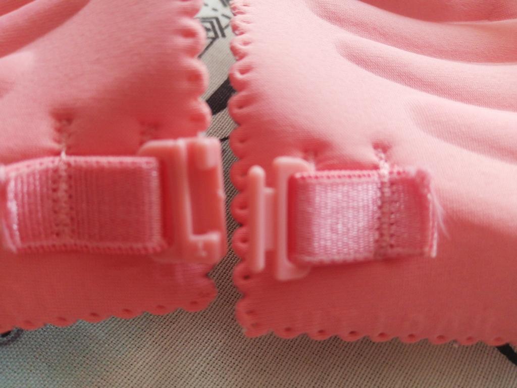 Rozmiar nie trafiony, gumki są bardzo słabe i dobrze się rozciągają, biustonosz w ogóle nie trzyma, miseczki są bardzo małe, w sam raz na malutki biust.
