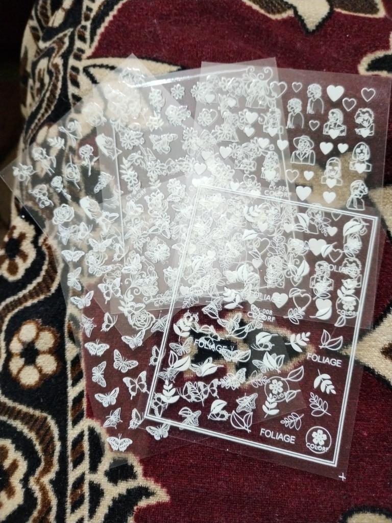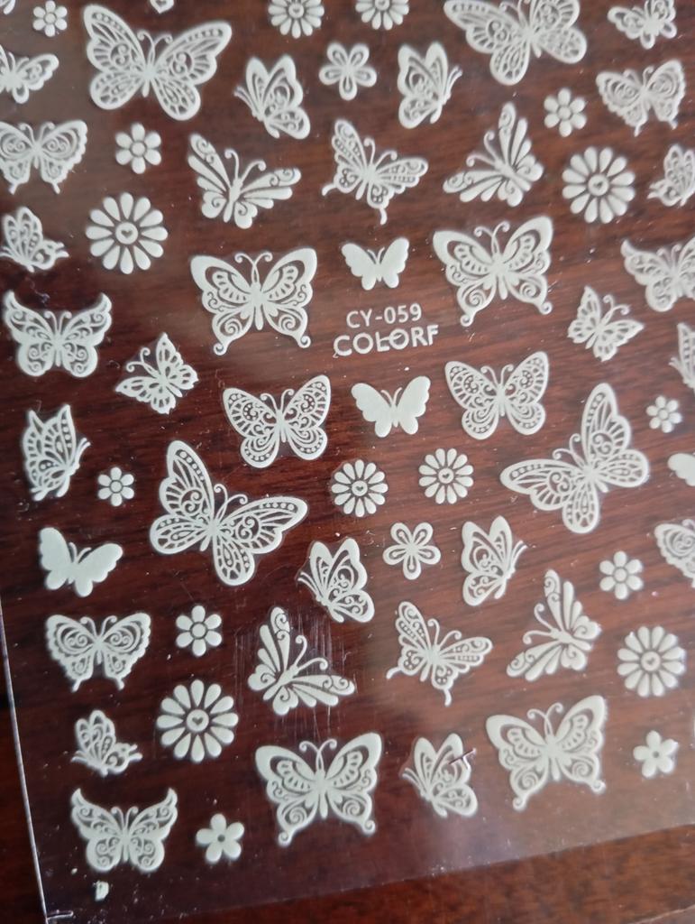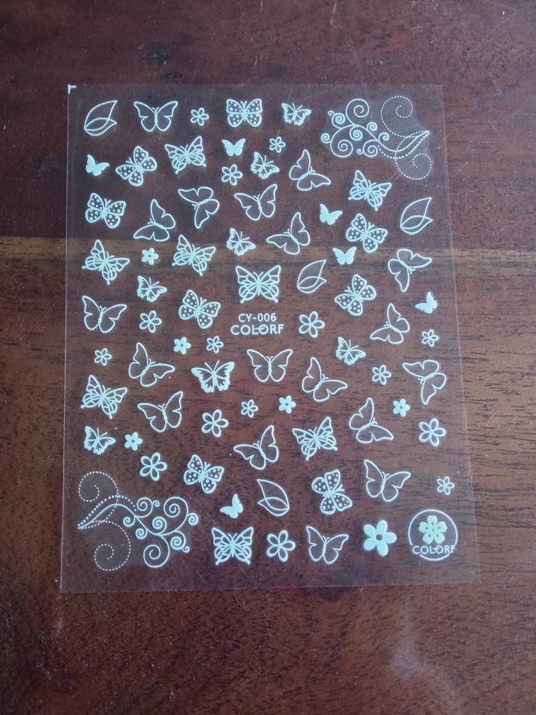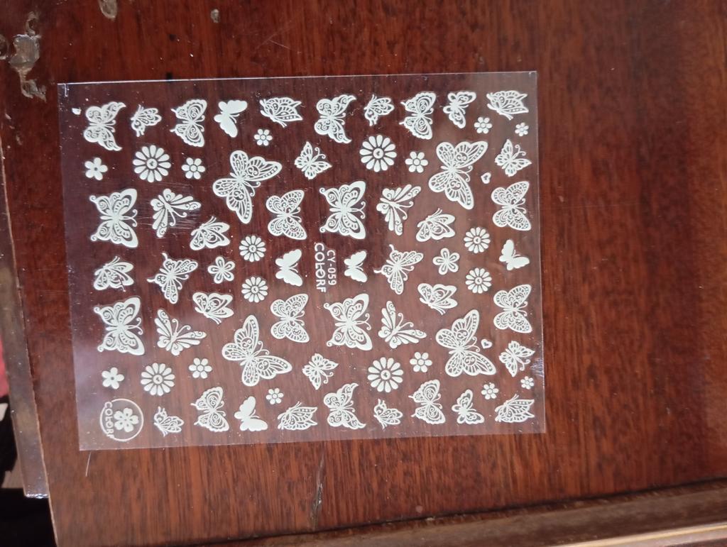 Jeden arkusz w ogóle się nie trzyma, naklejki odklejają się od paznokci od razu, drugi arkusz z motylami i różami trzyma się na paznokciach dobrze.