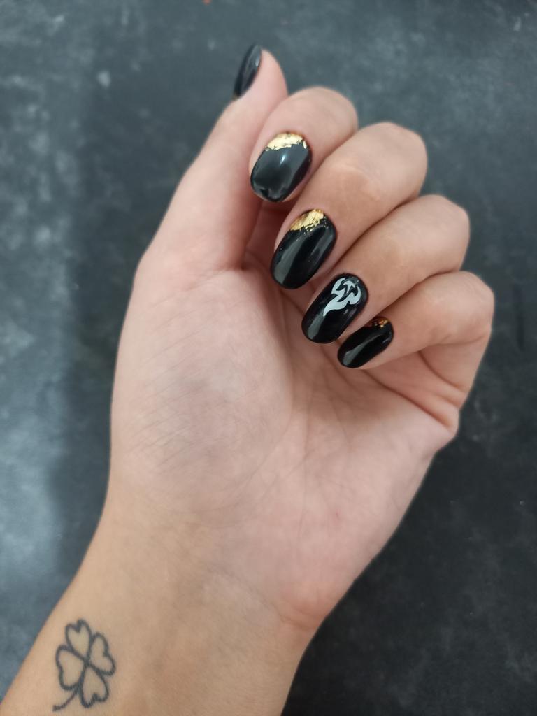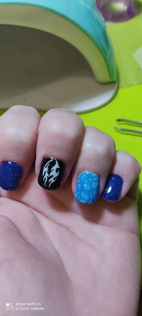 Naklejki z nuggetisami są przepiękne i świecą także w nocy.Zazwyczaj nakładam na nie czarny lakier, potem naklejam naklejki i całość utrwalam przezroczystym lakierem