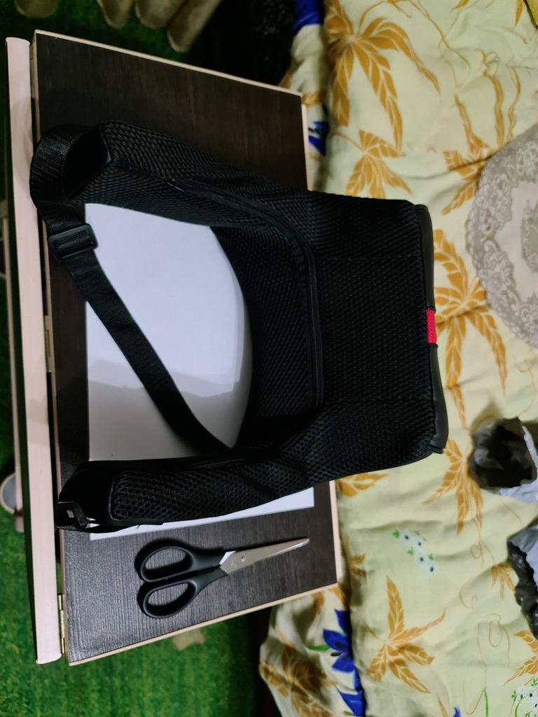 Jest trochę ciężki, a w środku znajduje się nieznany biały materiał. Jest przymocowana sznurkami, nie wiem jeszcze czy będzie normalnie trzymać.