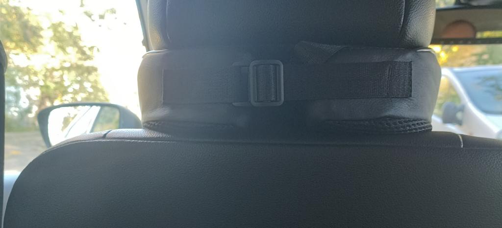 Wygodnie oparcie pod szyję. Jedyny minus jest taki że nie wiem jak dobrze zapiąć pasek i czasem się luzuje.