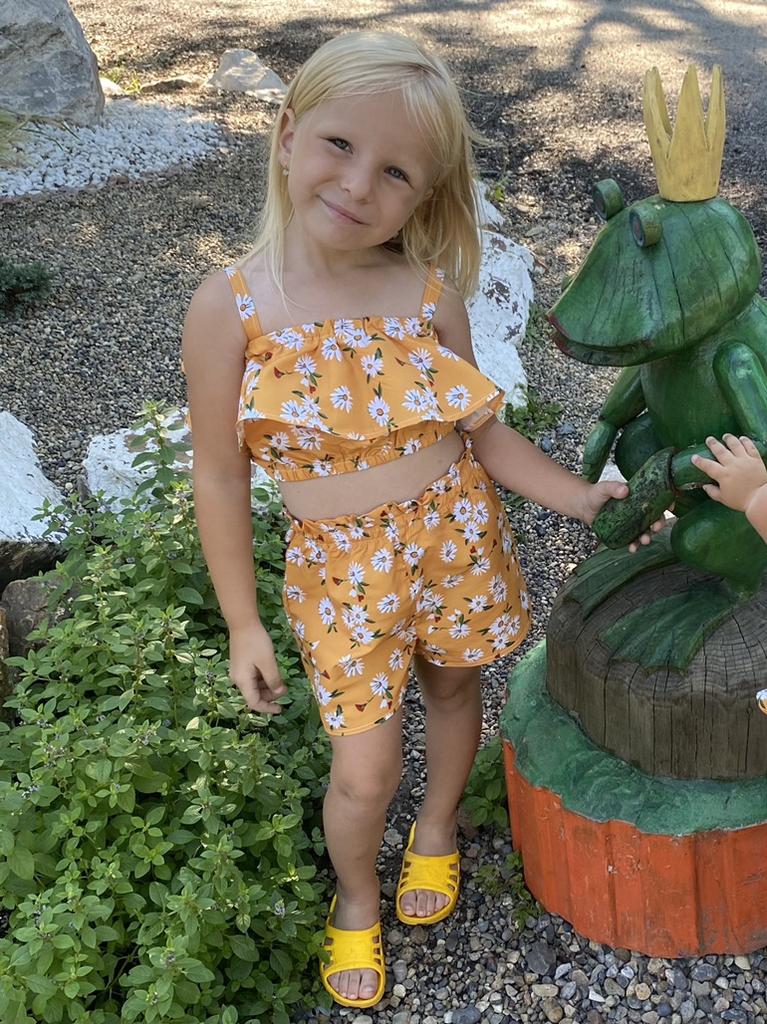 Summer Toddler Kids Baby Girl Floral Ruffle Sling Crop Tops + Shorts Pants Outfits Set