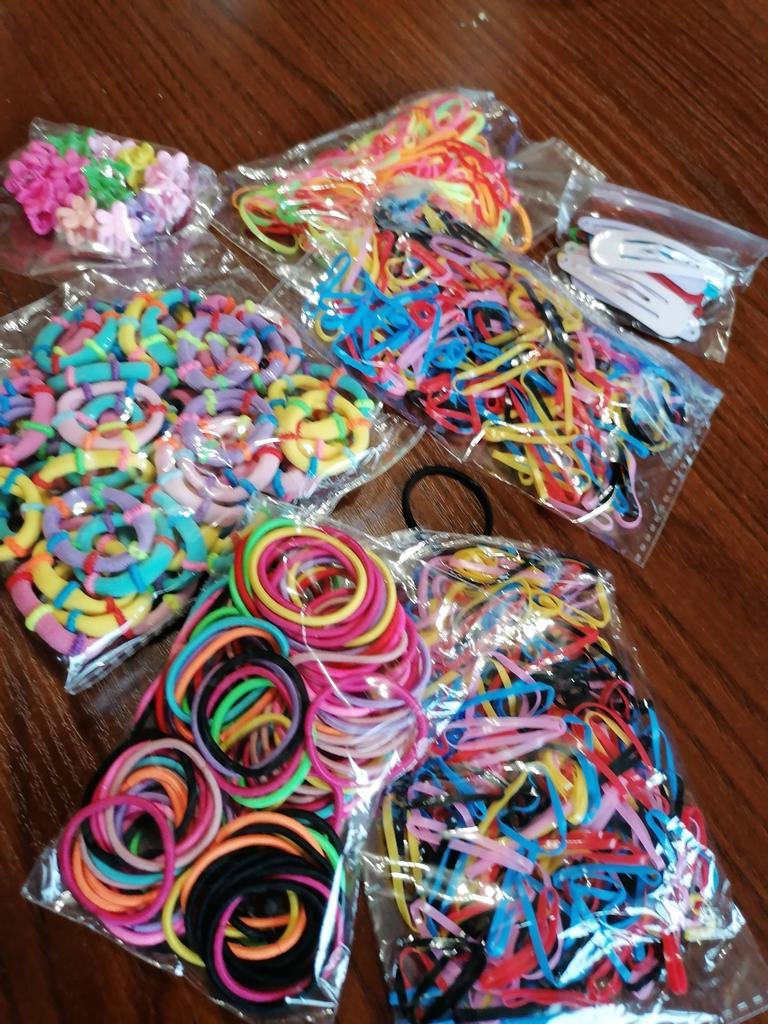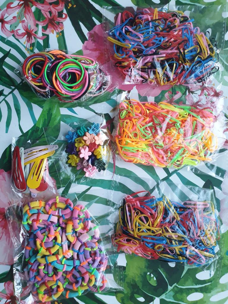 Zestaw akcesoriów do włosów super- identyczny ze zdjęciami w ofercie. Gumeczki są malutkie, idealne na dziecięce włoski. Są bardzo dobrej jakości, elastyczne i kolorowe. Spinki są metalowe, pokryte błyszczącym lakierem, natomiast kwiatuszki plastikowe. Świetnie trzymają się włosów. Polecam!