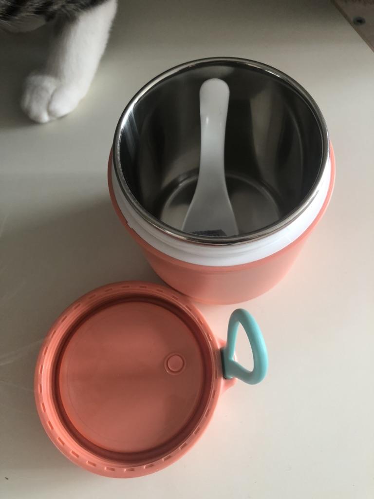 Super może być jedzenie. Mieści całkiem przyzwoitą porcję, natomiast sam słoiczek nie jest duży i zmieści się niemal w każdej torebce czy plecaku. Nie przecieka, ale słabo utrzymuje temperaturę. Jedzenie pozostaje ciepłe przez około 2 godziny, ale dla mnie jest to w porządku. Razem ze słoiczkiem dotarła łyżeczka, co jest miłą niespodzianką.
