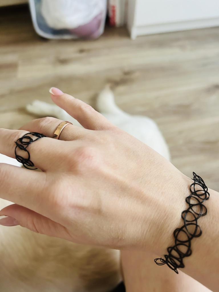 Podoba mi się!! Choker i bransoletka są bardzo dobre, choker zamówiłam ponownie, bo mój poprzedni się rozpadł. I ten jest o wiele lepszy! Kiedy zakładasz/przewracasz bransoletkę/choker, początkowo czuć, że coś jest na szyi lub nadgarstku, ale potem się przyzwyczajasz i nie czujesz. Pierścionek jest dobry, ale nie był dla mnie zbyt wygodny i zepsuł się z mojej winy(( No cóż