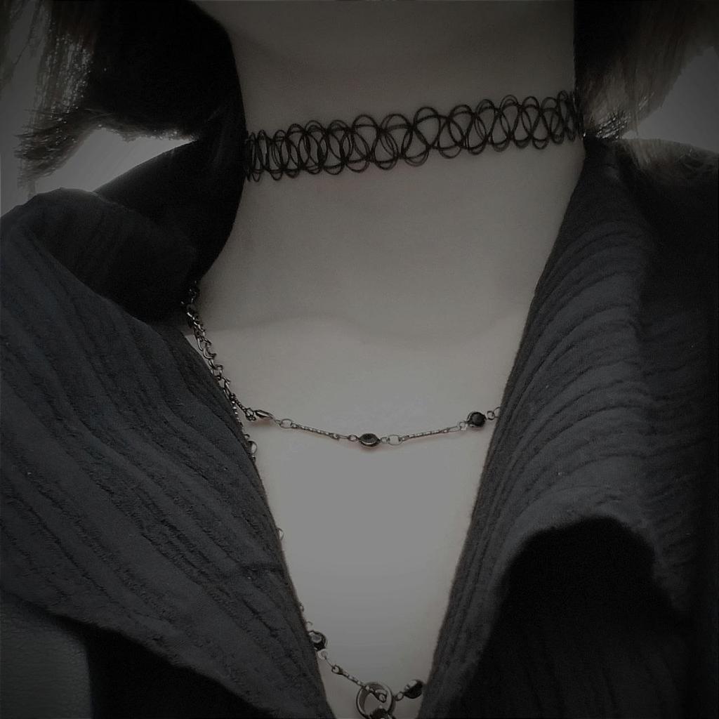 Seksowny rozciągliwy czarny tatuaż Choker Naszyjnik Bransoletka Zestawy pierścionków Gotycka biżuteria punkowa