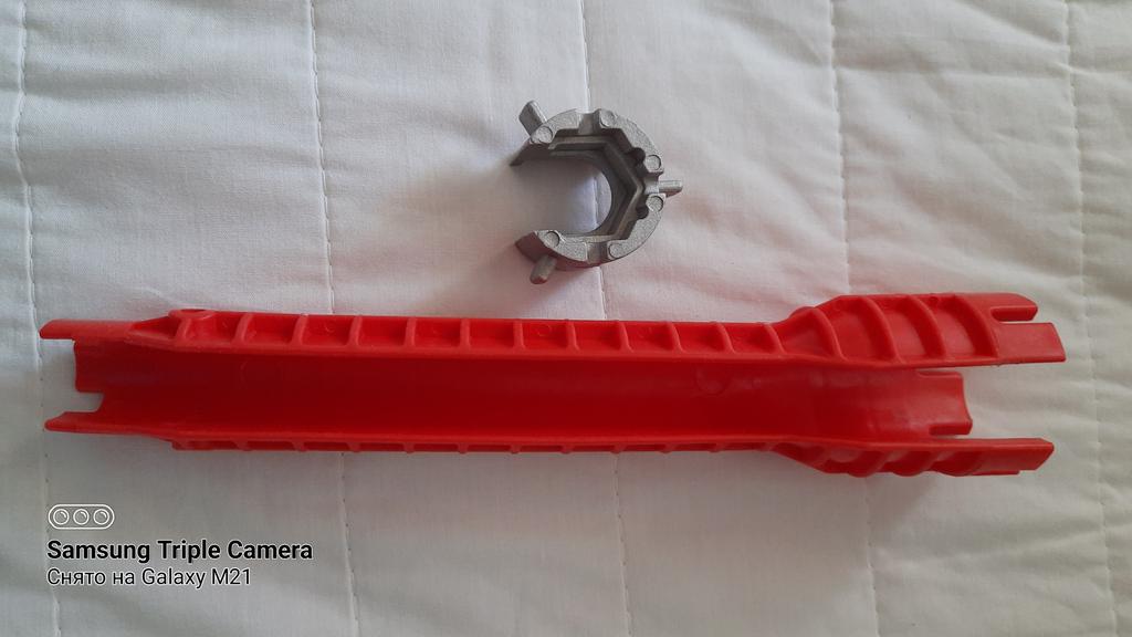 Klucz jest wykonany z plastiku i nie ma możliwości dokręcenia nakrętki.