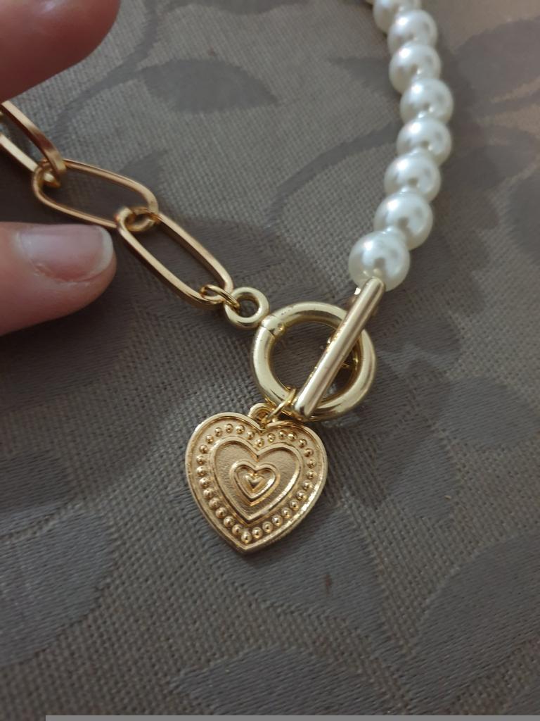 Moda Wykwintna Biała Perła Serce Stop cekinów Metalowy łańcuch Naszyjnik Kobiet Biżuteria Prezent