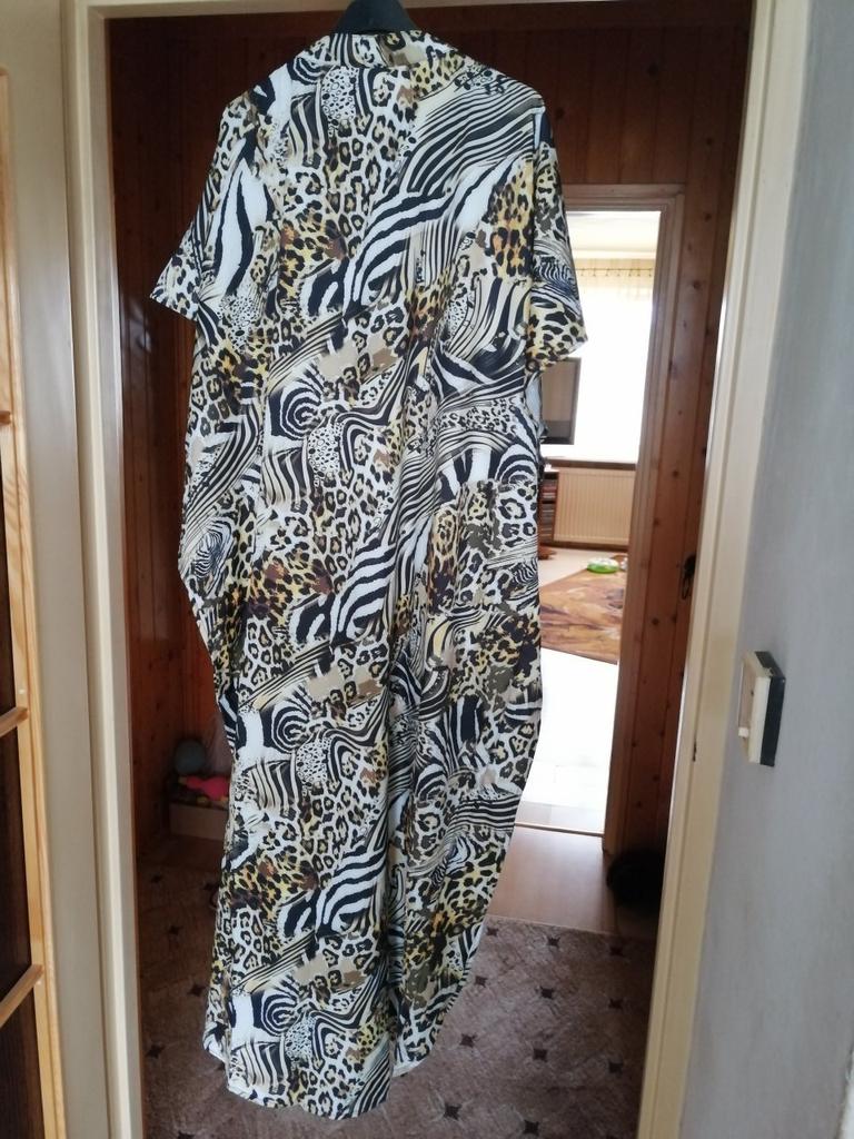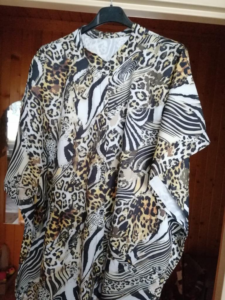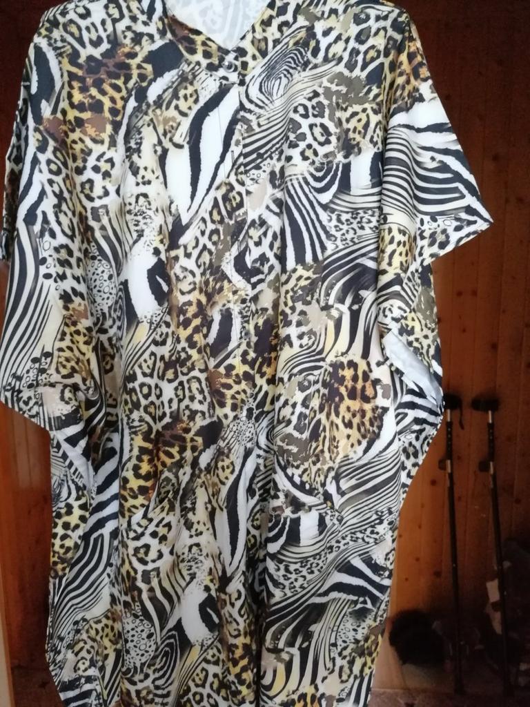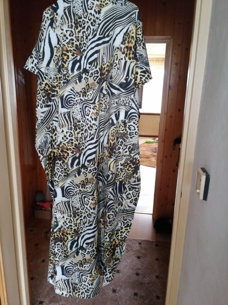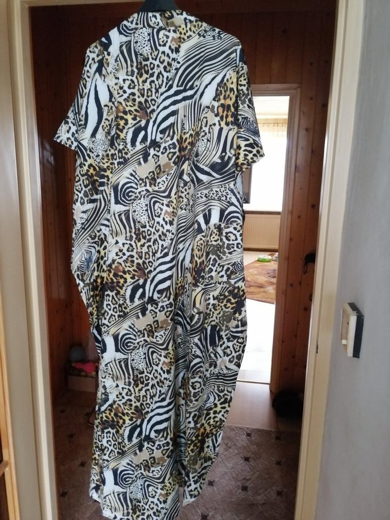 Ładnie zaokrąglony kształt u dołu i naprawdę piękne kolory. 👍💐 Sprzedawca mówi o sztucznym jedwabiu, ale tkanina to 100% poliester. 😠 Nie przepuszcza powietrza i może powodować pocenie się w upale. 🥵🔥 Nie mogę tego nosić, kiedy jest naprawdę gorąco.😤🌞 Szkoda, ale nadaje się, gdy dni są mniej gorące. 💖😍 Pasuje na rozmiary od 40 do 48. ⭐👍💝