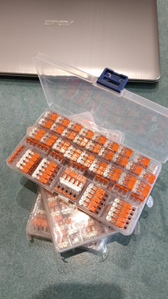Moim zdaniem te obejmy są lepsze od zwykłych obejm WAGO. Z jednej strony widać, czy przewody są prawidłowo i stabilnie osadzone w końcówce, z drugiej strony są one znacznie mniejsze, co jest szczególnie korzystne w małych skrzynkach rozdzielczych.