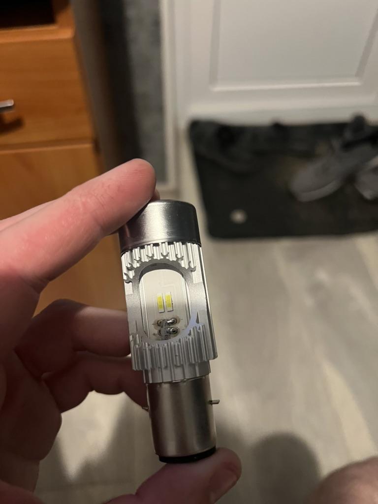 Trzeba jeszcze przetestować w reflektorze. Testowany na ładowarce, działa i jest bardzo jasny. Reflektor pokazuje wtedy, że gołe aluminiowe części powodują rozpraszające światło rozproszone w światłach mijania. Dlatego pokryję te części żaroodporną matową czarną farbą To powinno uniknąć tego rozbłysku. Po przetestowaniu tego ponownie zaktualizuję tę recenzję.